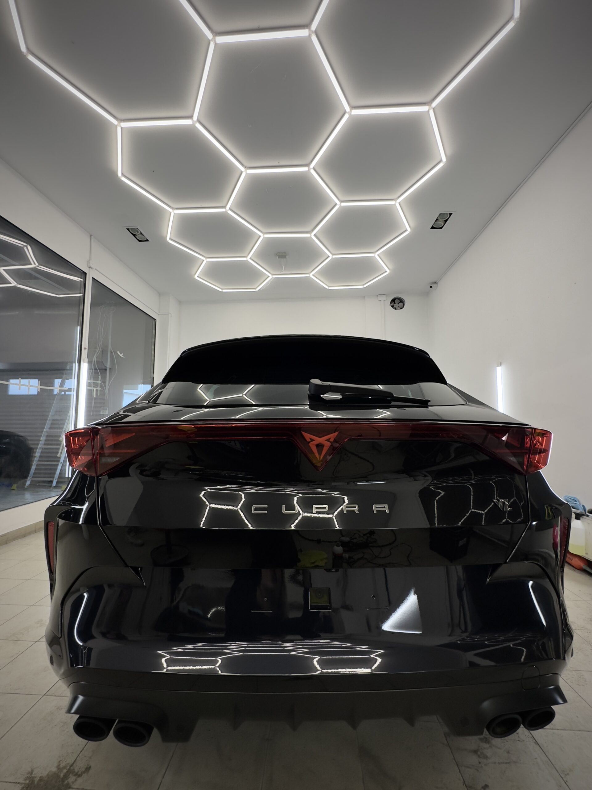 Właśnie zakończyliśmy aplikację profesjonalnej powłoki ceramicznej na czarną Cuprę Formentor. Samochód zyskał niesamowity połysk, pogłębienie koloru i doskonałą ochronę lakieru przed zarysowaniami oraz niekorzystnymi warunkami atmosferycznymi.