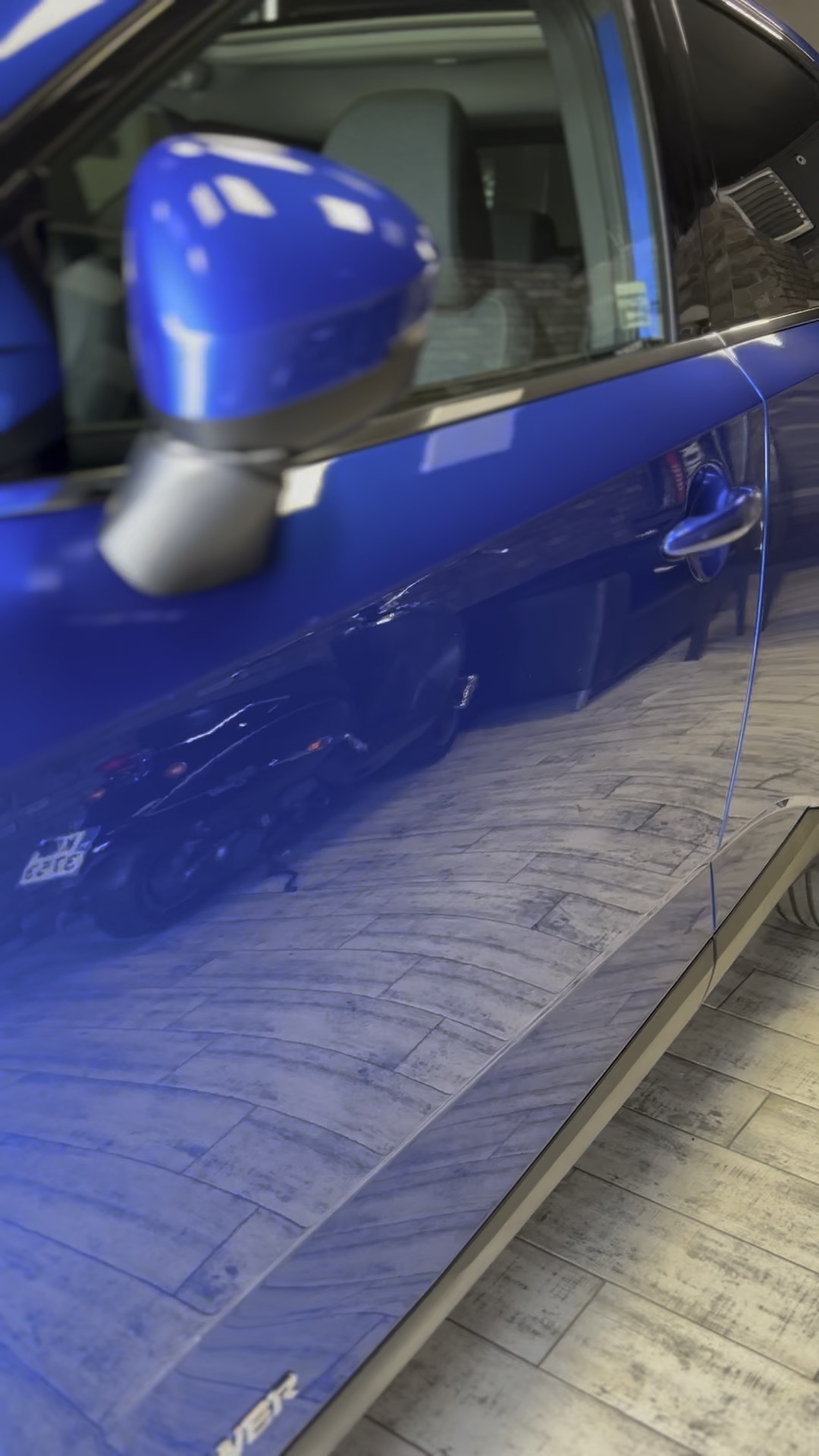Po dokładnym oczyszczeniu przystąpiliśmy do inspekcji lakieru przy użyciu lamp inspekcyjnych. Na niebieskim lakierze zauważyliśmy drobne zarysowania oraz mikrouszkodzenia.