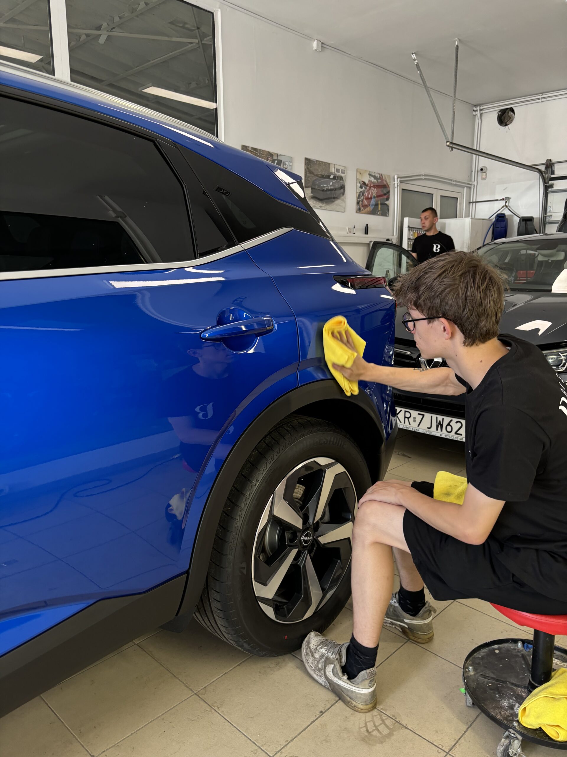 Po zakończeniu prac Nissan Qashqai wyglądał jak nowy – głęboki, niebieski kolor lakieru nabrał intensywności, a samochód zyskał ochronę na wiele miesięcy. Na koniec przekazaliśmy właścicielowi szczegółowe wskazówki dotyczące pielęgnacji auta z powłoką ceramiczną, aby cieszył się efektem jak najdłużej.